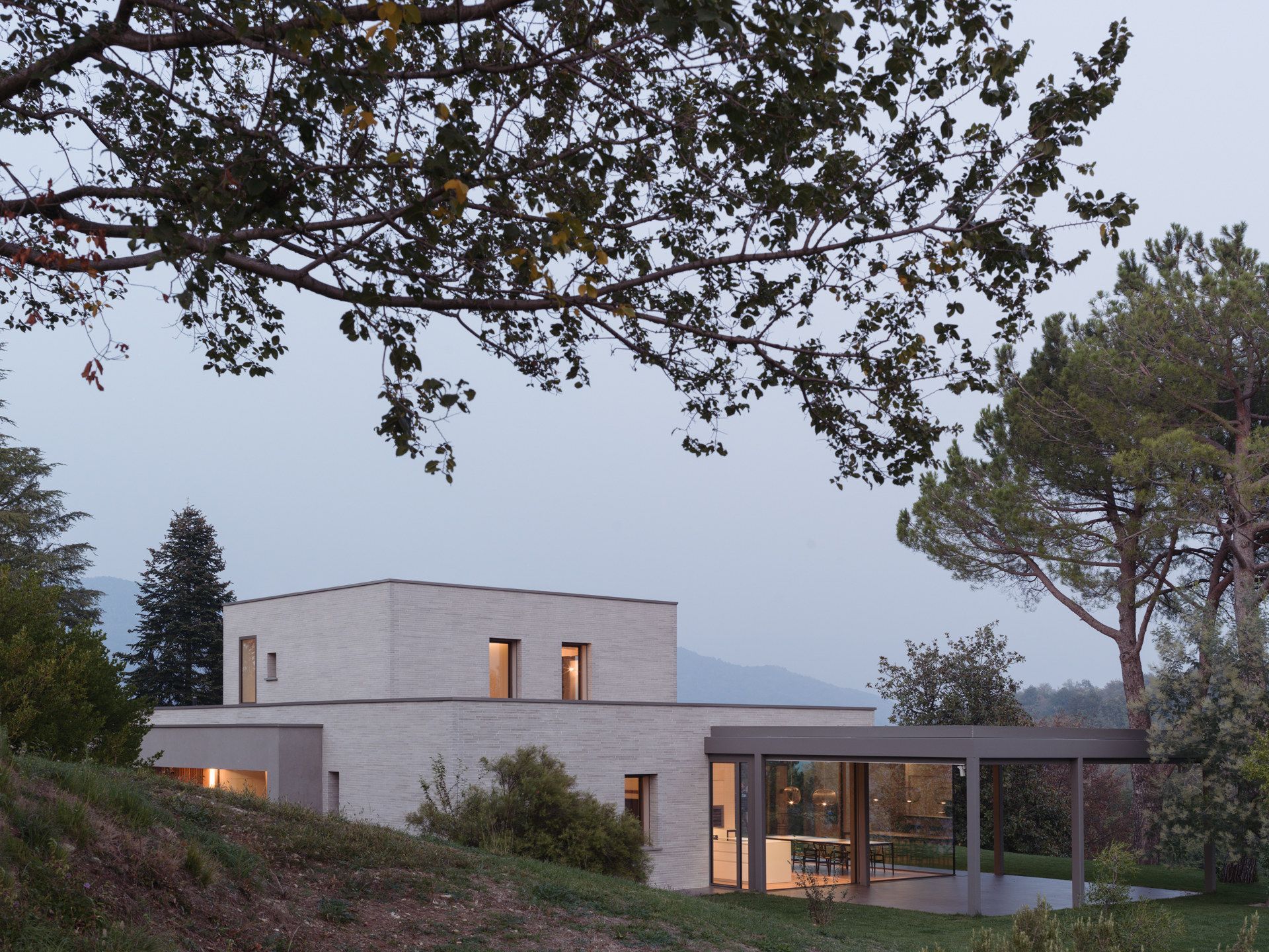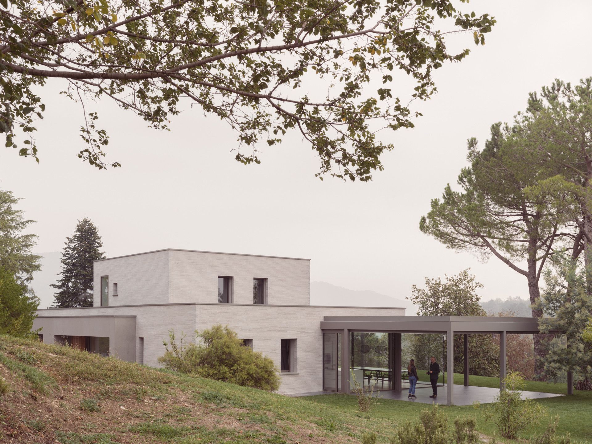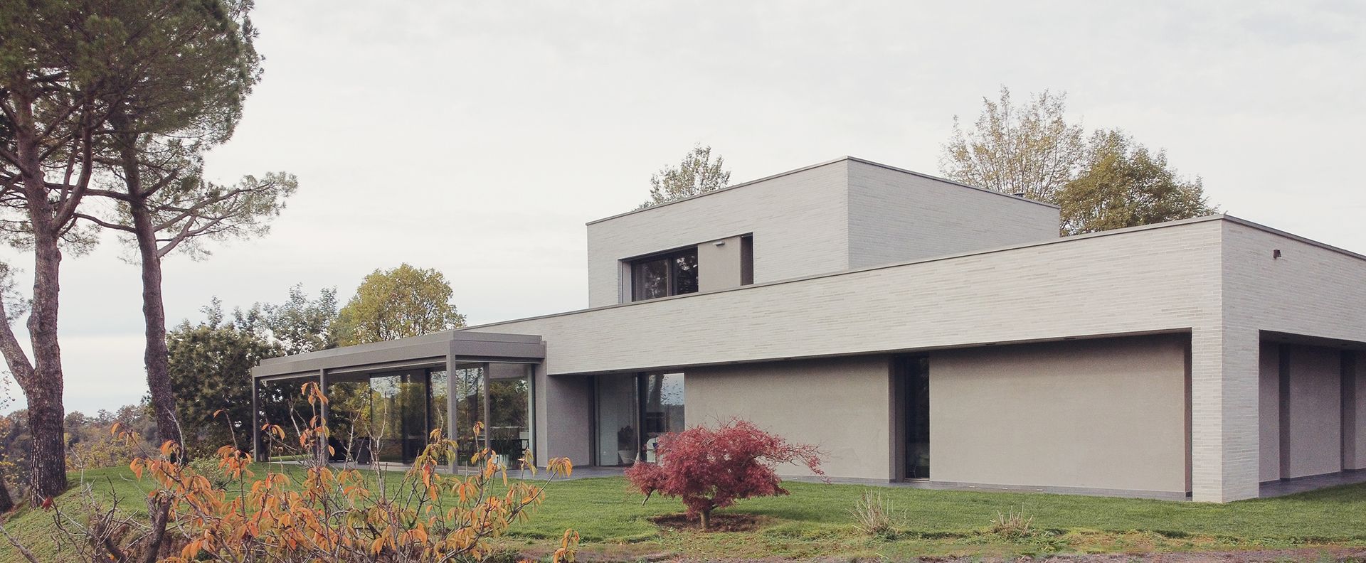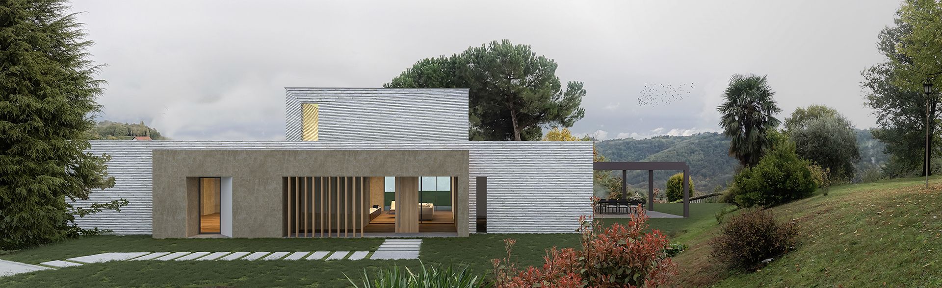 Il disegno architettonico privilegia linee orizzontali ed introduce grandi aperture ed ampi spazi di soggiorno all’aperto che rendono la casa piu’ permeabile al paesaggio e favoriscono la percezione degli straordinari affacci sulla valle del Curone.