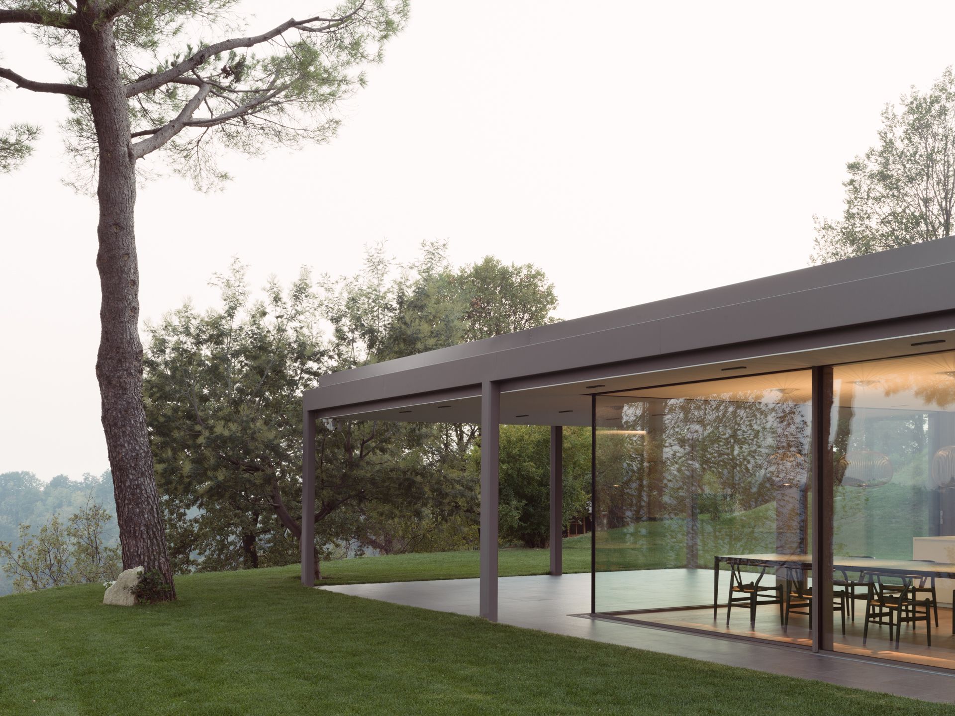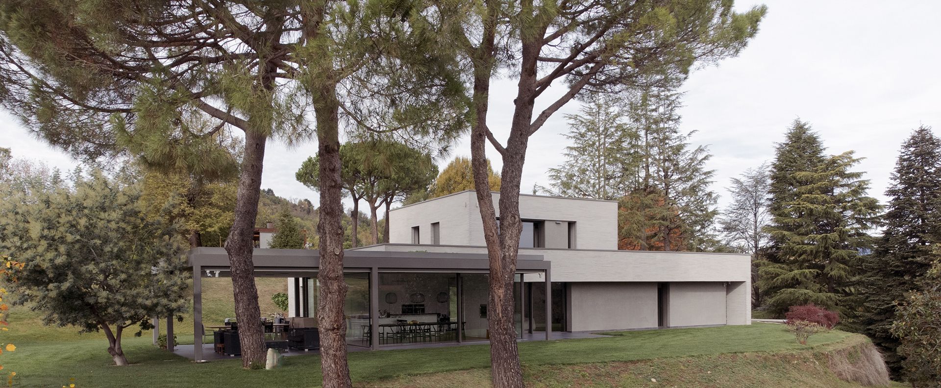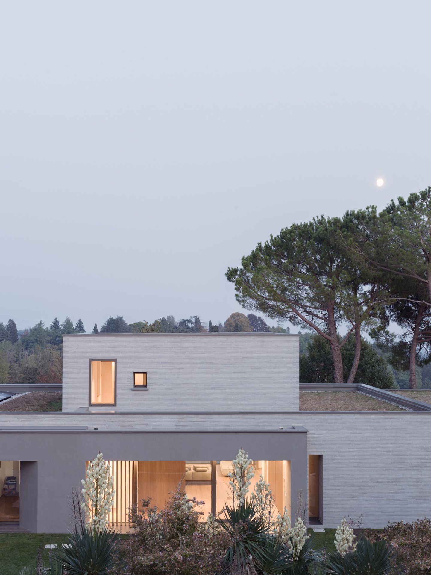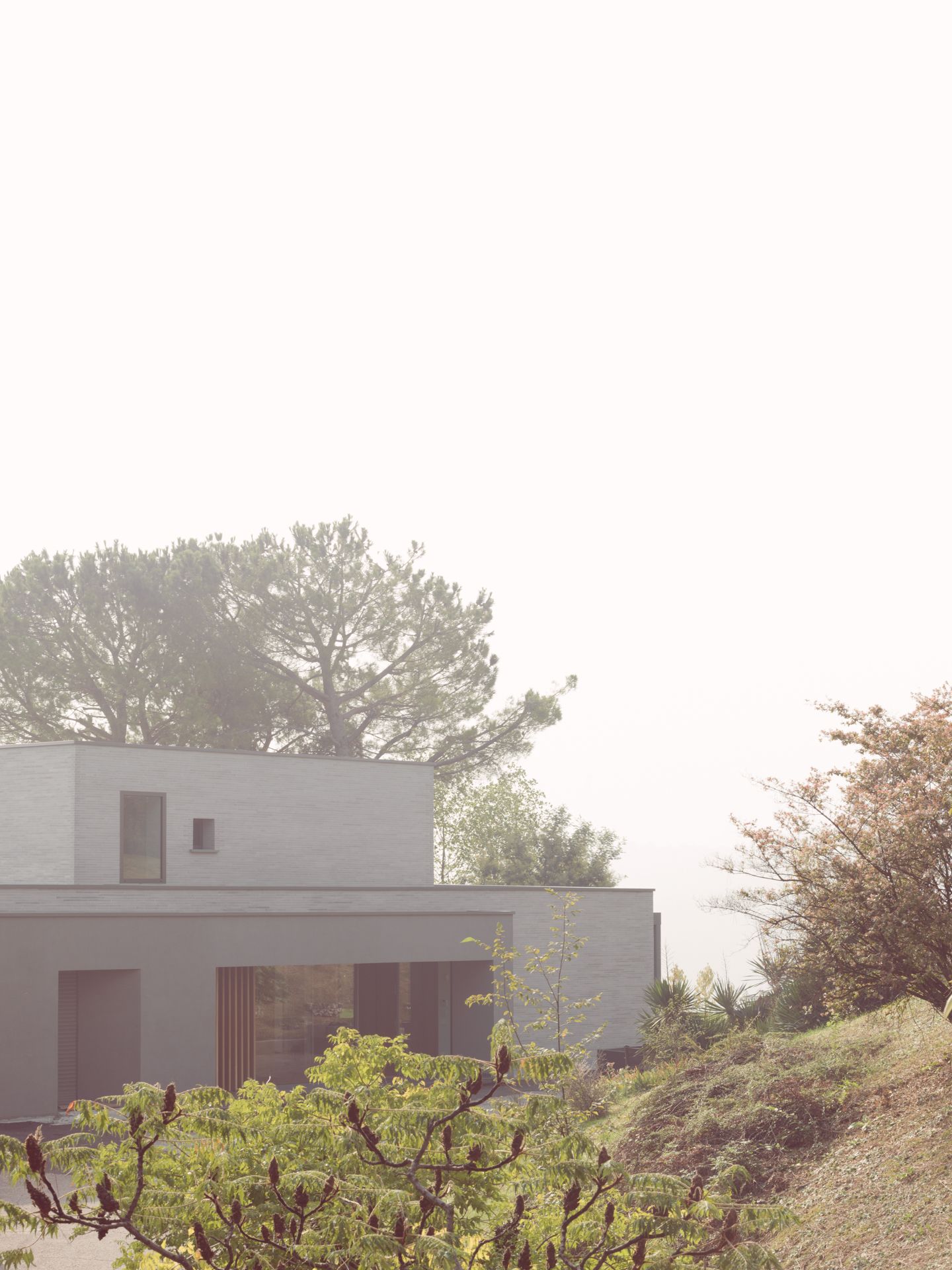 Il disegno architettonico privilegia linee orizzontali ed introduce grandi aperture ed ampi spazi di soggiorno all’aperto che rendono la casa piu’ permeabile al paesaggio e favoriscono la percezione degli straordinari affacci sulla valle del Curone.