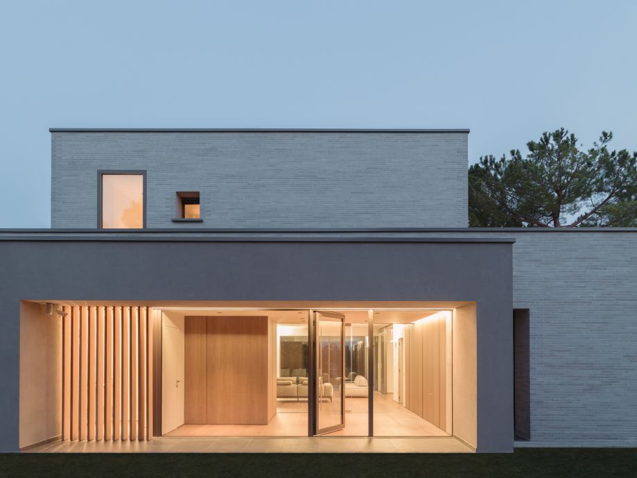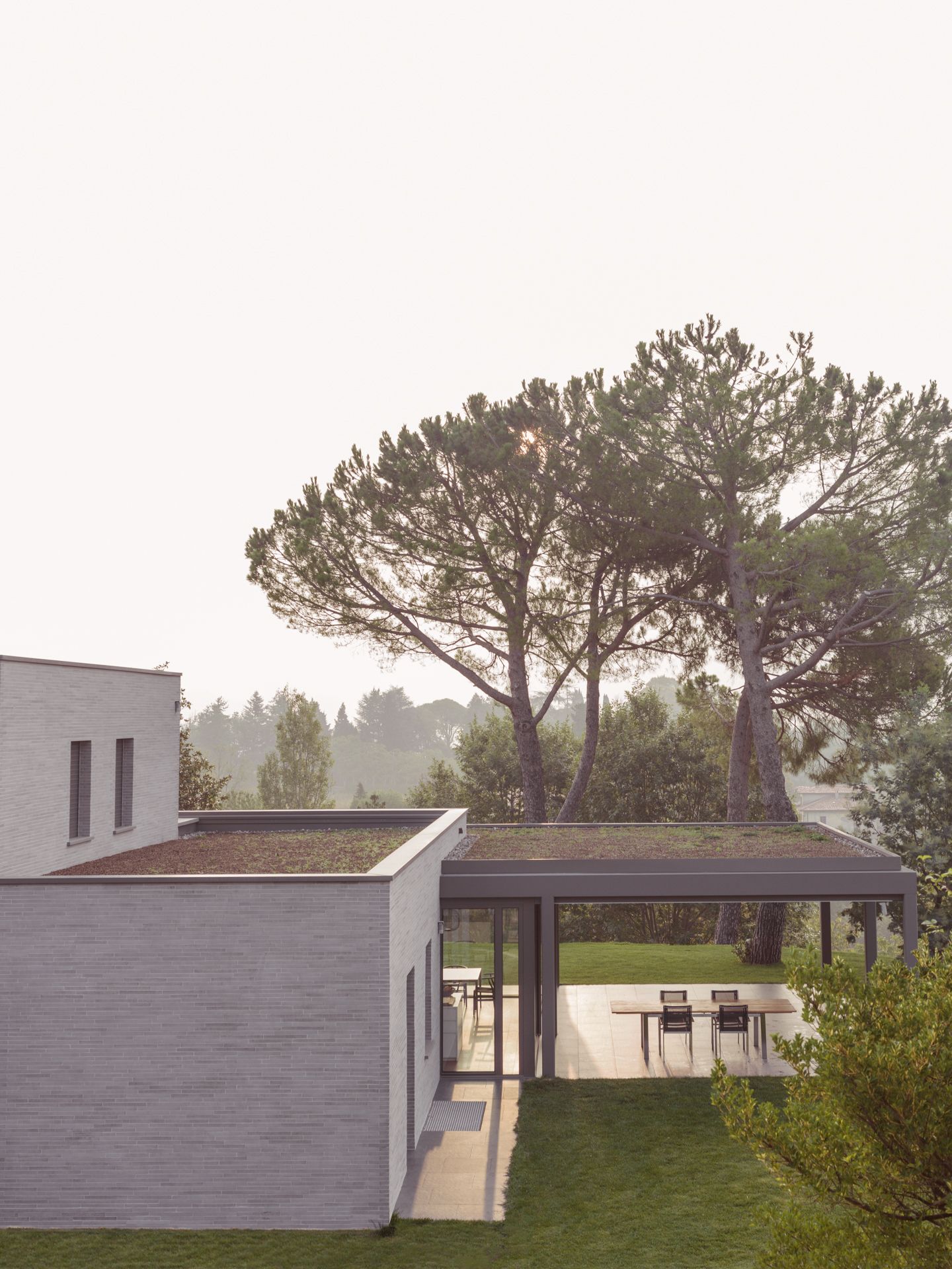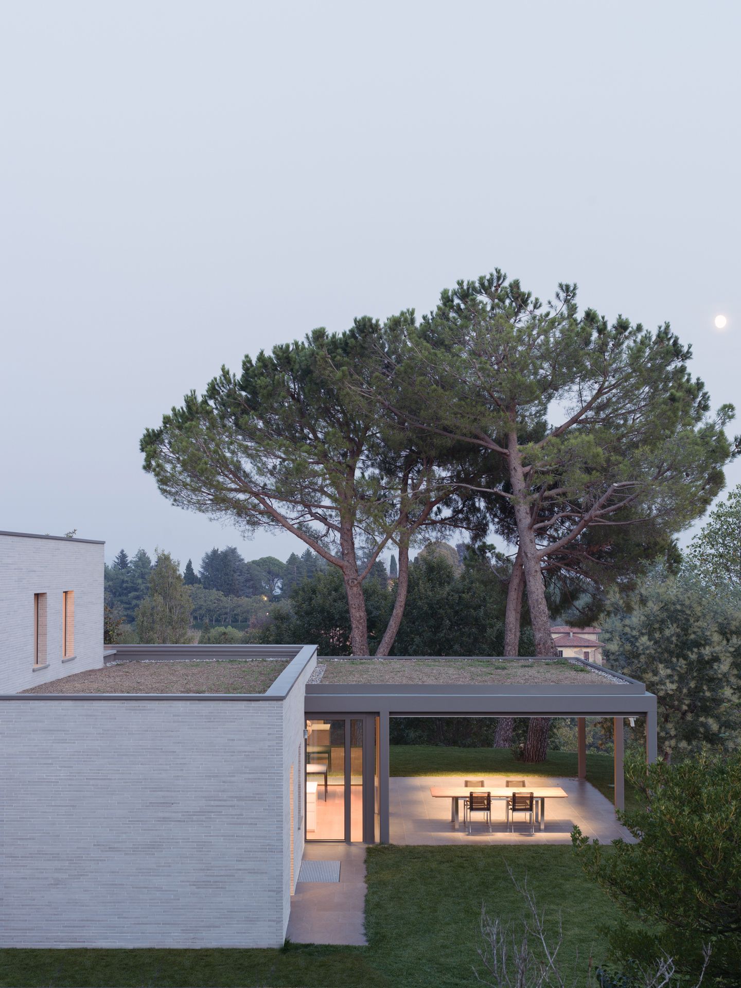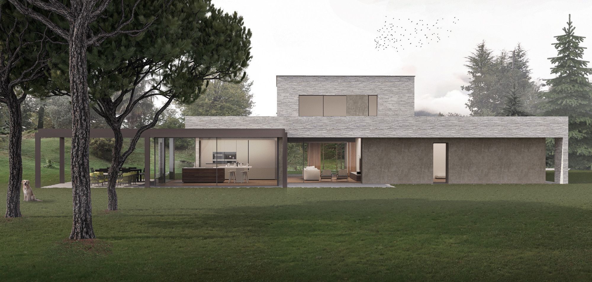 Il disegno architettonico privilegia linee orizzontali ed introduce grandi aperture ed ampi spazi di soggiorno all’aperto che rendono la casa piu’ permeabile al paesaggio e favoriscono la percezione degli straordinari affacci sulla valle del Curone.