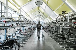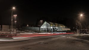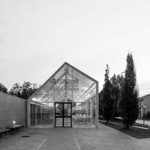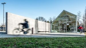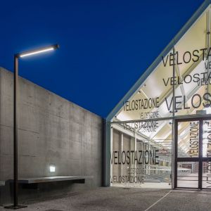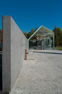 La velostazione è concepita come un piccolo oggetto, trasparente, colorato e illuminato: una sorta di lanterna che segnala il punto di partenza o di approdo per chi, alle prime luci dell’alba e all’imbrunire, raggiunge la stazione ferroviaria per recarsi al lavoro o tornare a casa.