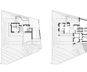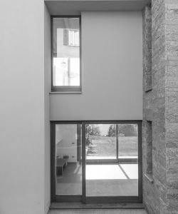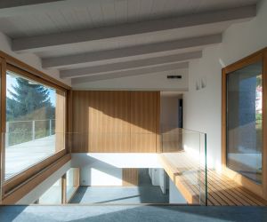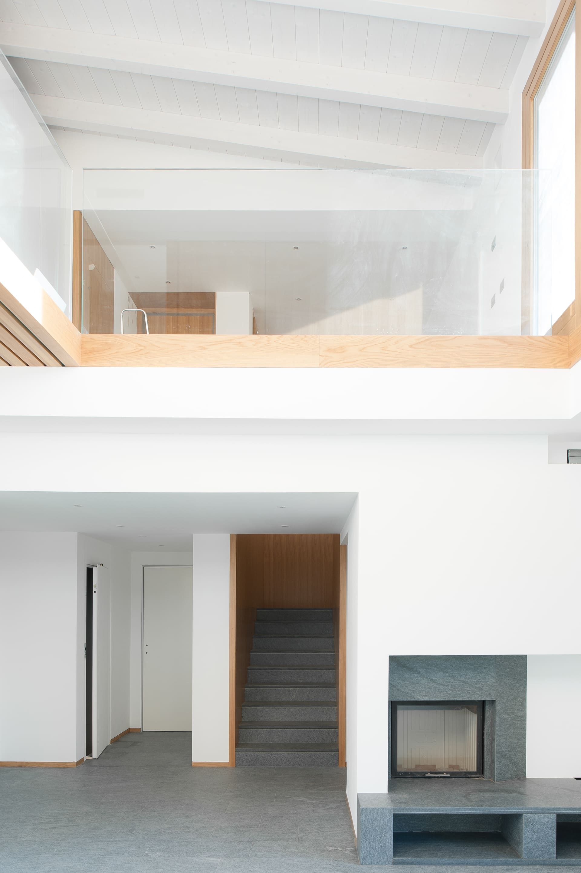 L’architettura interpreta la tradizione costruttiva locale in chiave contemporanea, coniugando elementi tipologici, quali la copertura a falda, e materiali ricorrenti, l’intonaco, il legno e la pietra, in una composizione che introduce spazi a doppia altezza, ampie vetrate, portici profondi e giardini pensili.