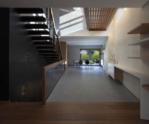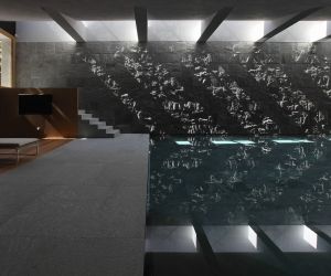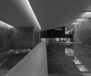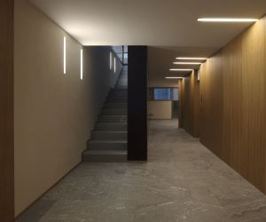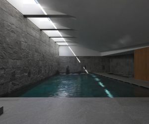 L’idea-guida del progetto è delineata da due “segni”: la geometria allungata e degradante del lotto e la preesistenza di un grande vuoto centrale corrispondente ad un deposito interrato. Queste premesse fondamentali hanno suggerito di collocare buona parte delle funzioni previste – piscina spa, taverna, locali tecnici e di servizio – a livello seminterrato sfruttando l’orografia degradante del terreno.