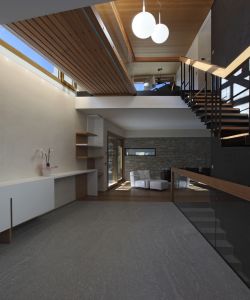 Ne risultano una serie di terrazzamenti che, reinterpretando la tradizione dello sfruttamento agricolo dei pendii, definiscono una successione di muri in pietra e giardini pensili capaci di celare buona parte delle superfici edificate e rendere percepibile il solo volume residenziale.