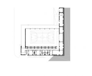 - il corpo di servizio seminterrato adibito a spogliatoi e ingresso atleti;