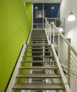 La soluzione individuata prevede l’allestimento di due aule didattiche e di spazi di servizio e accoglienza entro un volume industriale già in precedenza adibito ad accogliere un magazzino e alcune attività produttive.