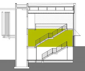 La realizzazione di un avancorpo, destinato a ospitare un nuovo sistema distributivo (scale e ascensore), e di una nuova facciata anteposta a quella esistente offre l’occasione per ridefinire e qualificare l’immagine architettonica dell’edificio presente.