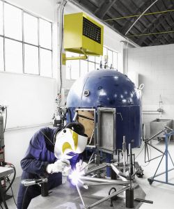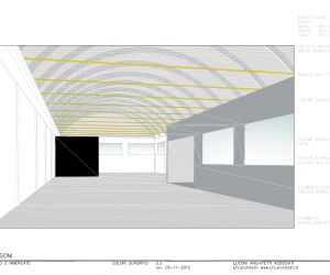 Il programma funzionale è risolto introducendo nuovi volumi nell’atelier di Vimercate che salvaguardano il carattere e la continuità dello spazio interno. La soluzione architettonica adottata gioca sul contrasto tra la superficie della copertura a botte, volutamente mantenuta grezza, e quella delle nuove “scatole” contraddistinte dall’uso del colore.