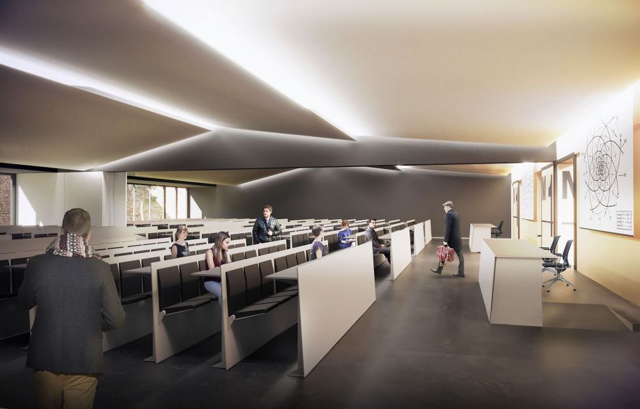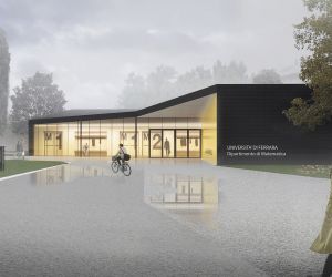 Il nuovo fabbricato è reso all'istante visibile dall’ingresso al Polo universitario e dalla prospiciente hall del Dipartimento di Matematica. La compattezza del volume, di un solo livello fuori terra, lascia ampio spazio intorno a sé per stabilire una chiara gerarchia delle aree esterne creando ambiti di relazione, spazi di servizio e altri destinati al ricovero delle biciclette. L’architettura si distingue per l’ampio “vuoto” centrale corrispondente all’atrio, che contrappone trasparenza, leggerezza e luminosità alla forte opacità del volume mono-materico.