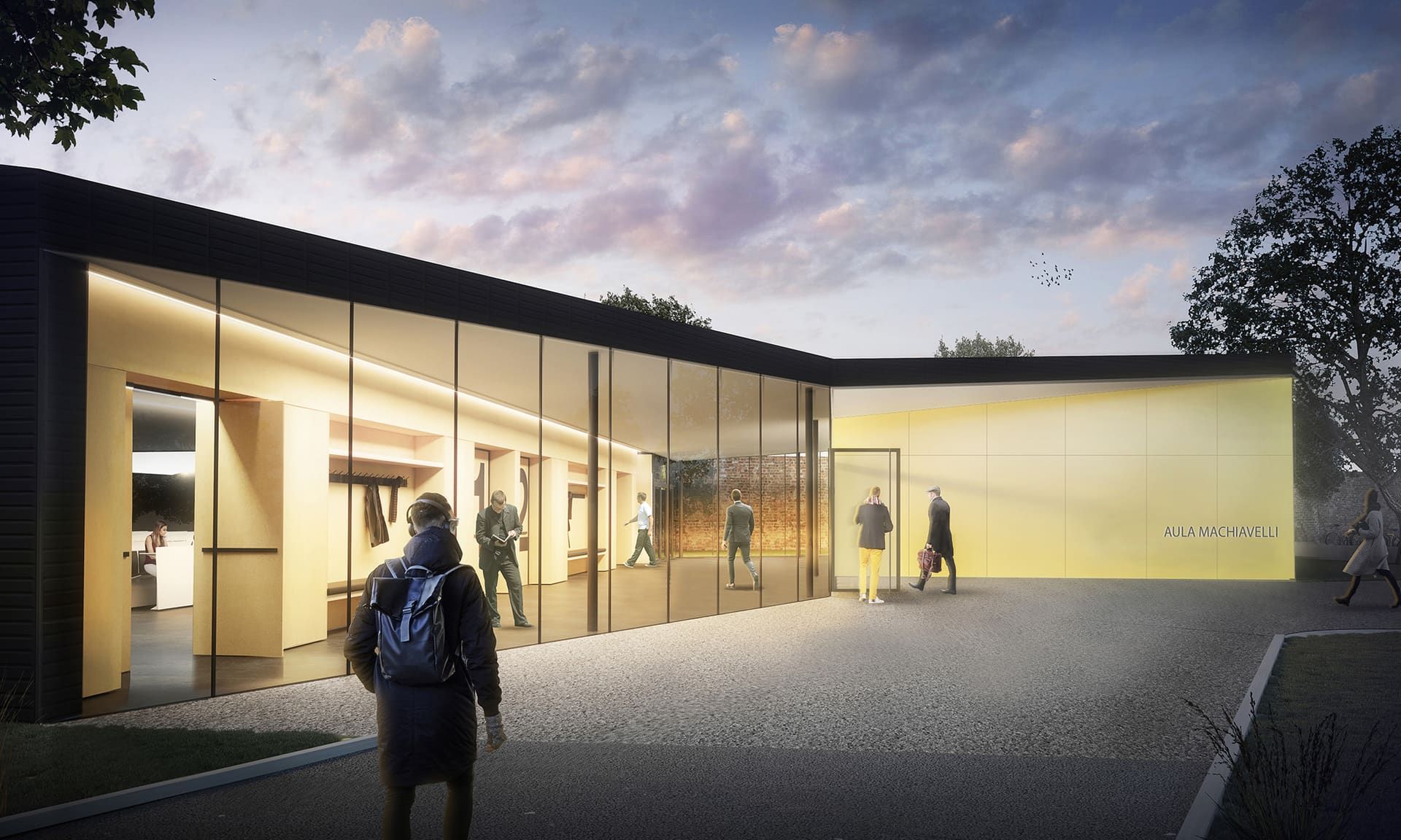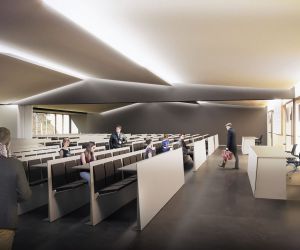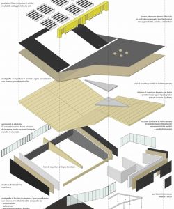 A questa logica “architettonica” corrisponde l’esigenza di attribuire permeabilità verso gli spazi comuni e di relazione, garantendo protezione e riservatezza alle aule didattiche che sono esclusivamente rivolte verso la quiete degli spazi verdi compresi tra l’edificio e i muri in laterizio di confine tipici del tessuto del centro storico ferrarese.