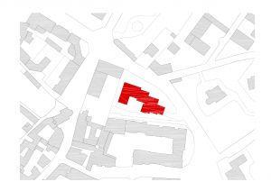 Il progetto interpreta il cambiamento della scena urbana inseguendo il filo di una ragione contesa tra le memorie iscritte nei luoghi e le nuove esigenze abitative. L’edificio residenziale ospita quarantuno appartamenti con annessa autorimessa interrata. Due condizioni date – la considerevole volumetria ammessa dallo strumento urbanistico e l’esigua superficie del lotto – hanno suggerito di articolare l’impianto planivolumetrico in modo tale da contenerne la percezione.