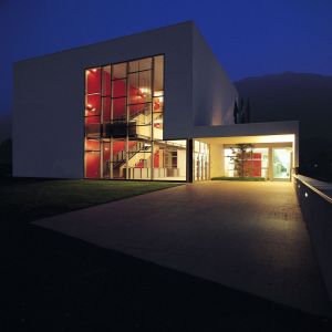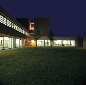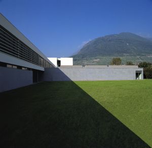 Tre soli materiali contraddistinguono l’architettura: la pietra grigia per il basamento dei laboratori, le superfici intonacate dei volumi soprastanti, le ampie superfici vetrate collocate in prossimità degli spazi esterni di relazione. La sobrietà delle forme, lo studio di dettagli essenziali e al contempo raffinati, il controllo dei costi di appalto e il rispetto dei tempi di costruzione sono gli elementi rilevanti della realizzazione.