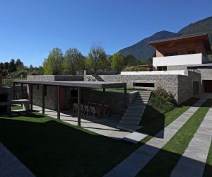 Ne risultano una serie di terrazzamenti che, reinterpretando la tradizione dello sfruttamento agricolo dei pendii, definiscono una successione di muri in pietra e giardini pensili capaci di celare buona parte delle superfici edificate e rendere percepibile il solo volume residenziale.